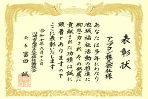 その多年にわたる功績により、この度、川崎市高津区社会福祉協議会より表彰されました。