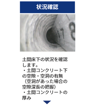 適切な箇所のコンクリート床に削孔して空洞・