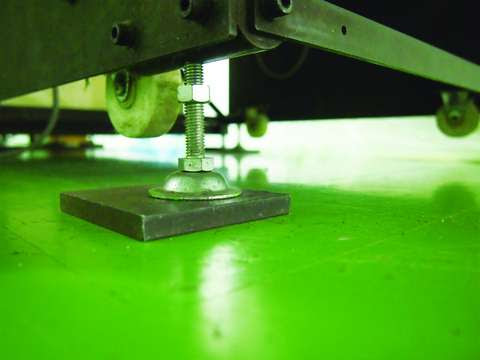 このアジャスターを使って床の微妙なレベル差を調整して機械を水平にしています。」