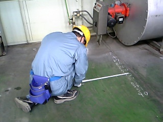 只今、アップコンは、新潟県某工場を施工中です。地盤沈下が原因でコンクリート床が沈んじゃっているんだって。