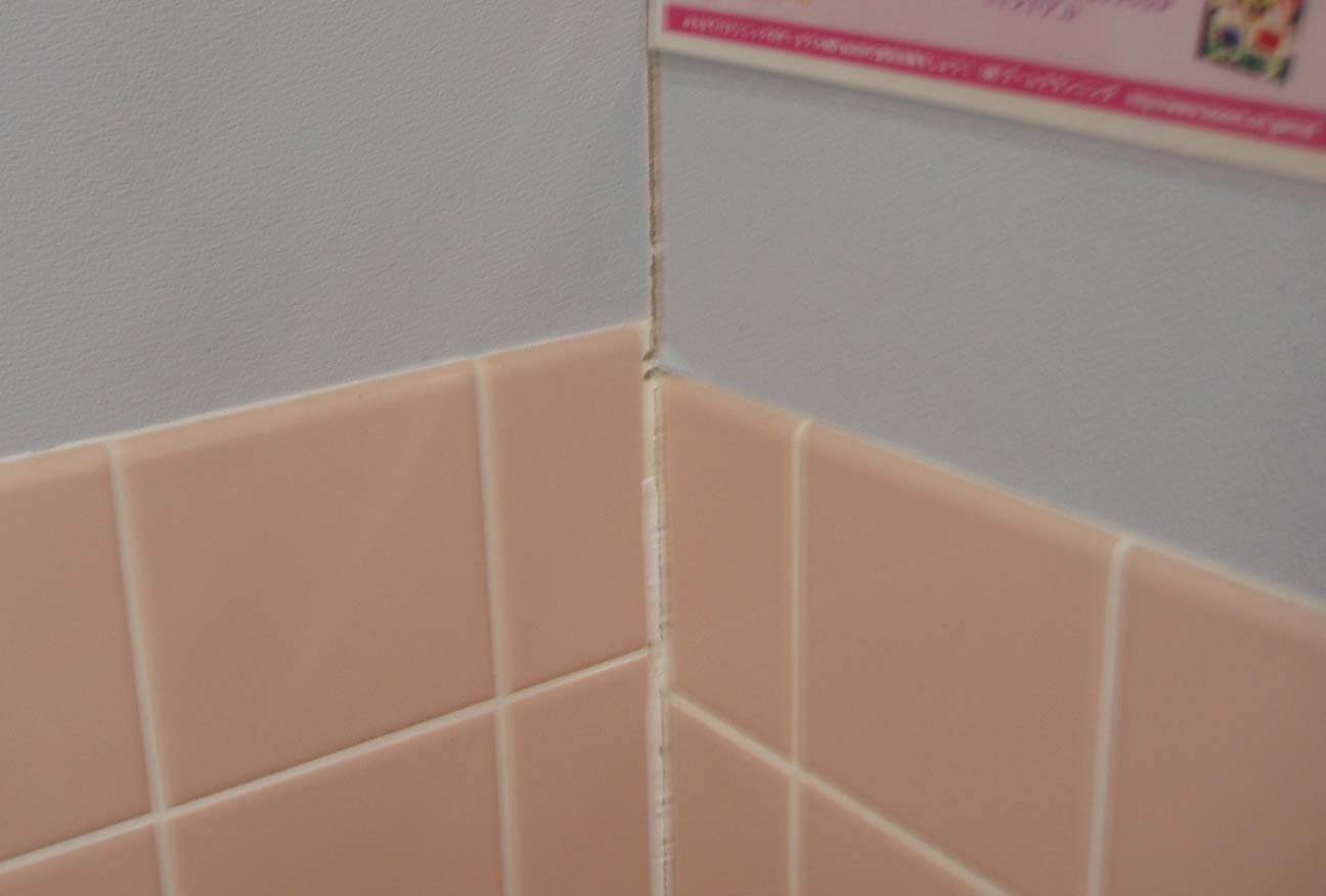 よ~く見てね。 天井から壁が少し離れているので、壁の上部が少し歪んでいます。