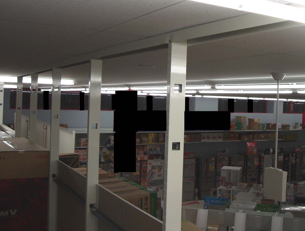 電化製品を売っている某店舗。 店内は、売り場 と 商品を仮置きしている場所が仕切られていました。