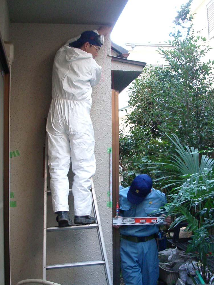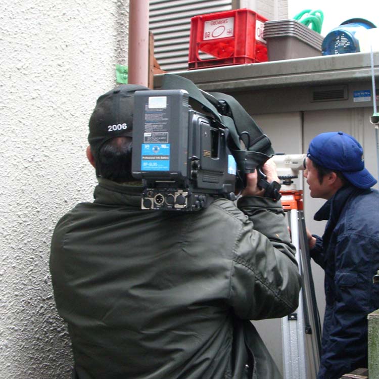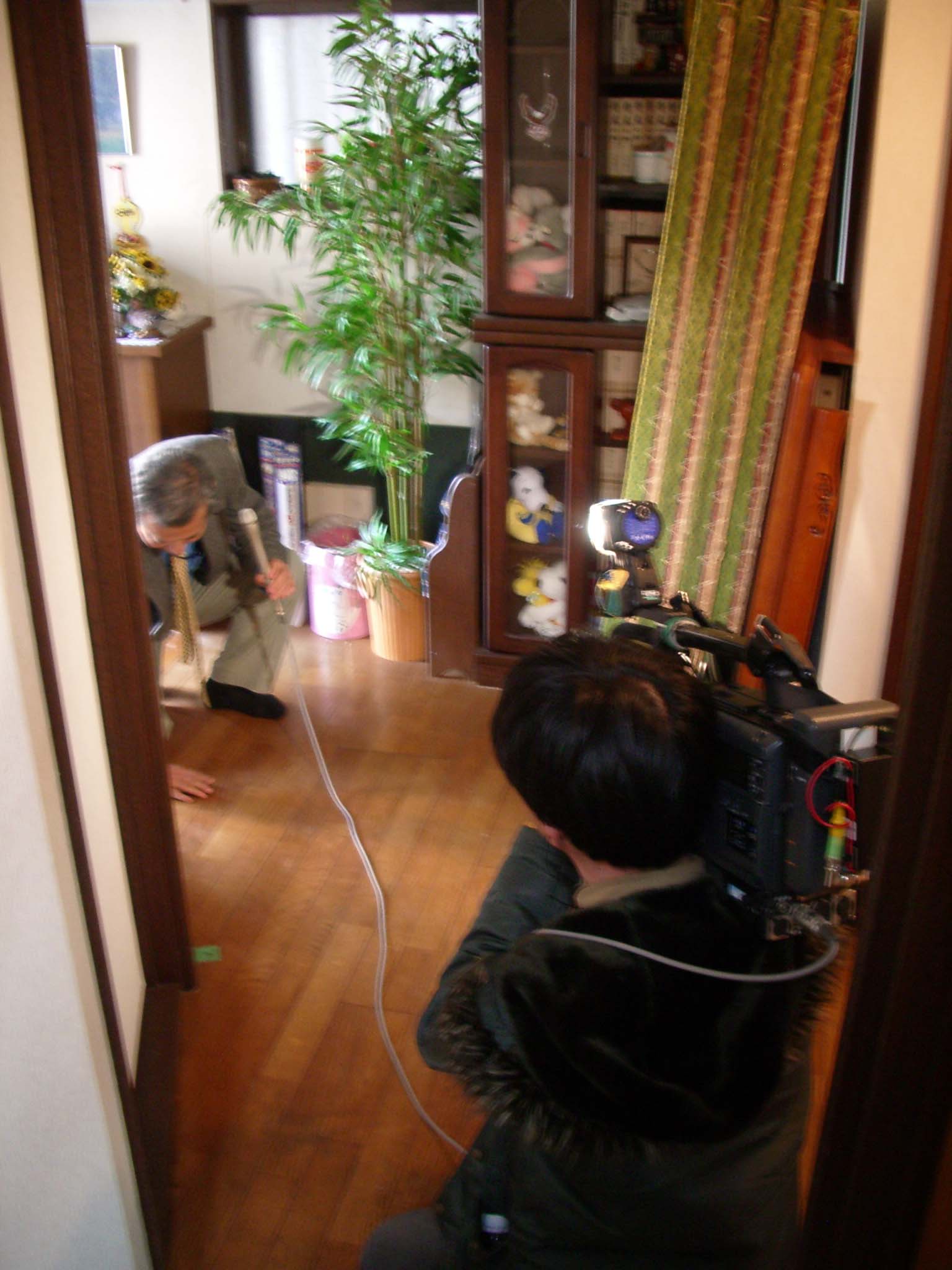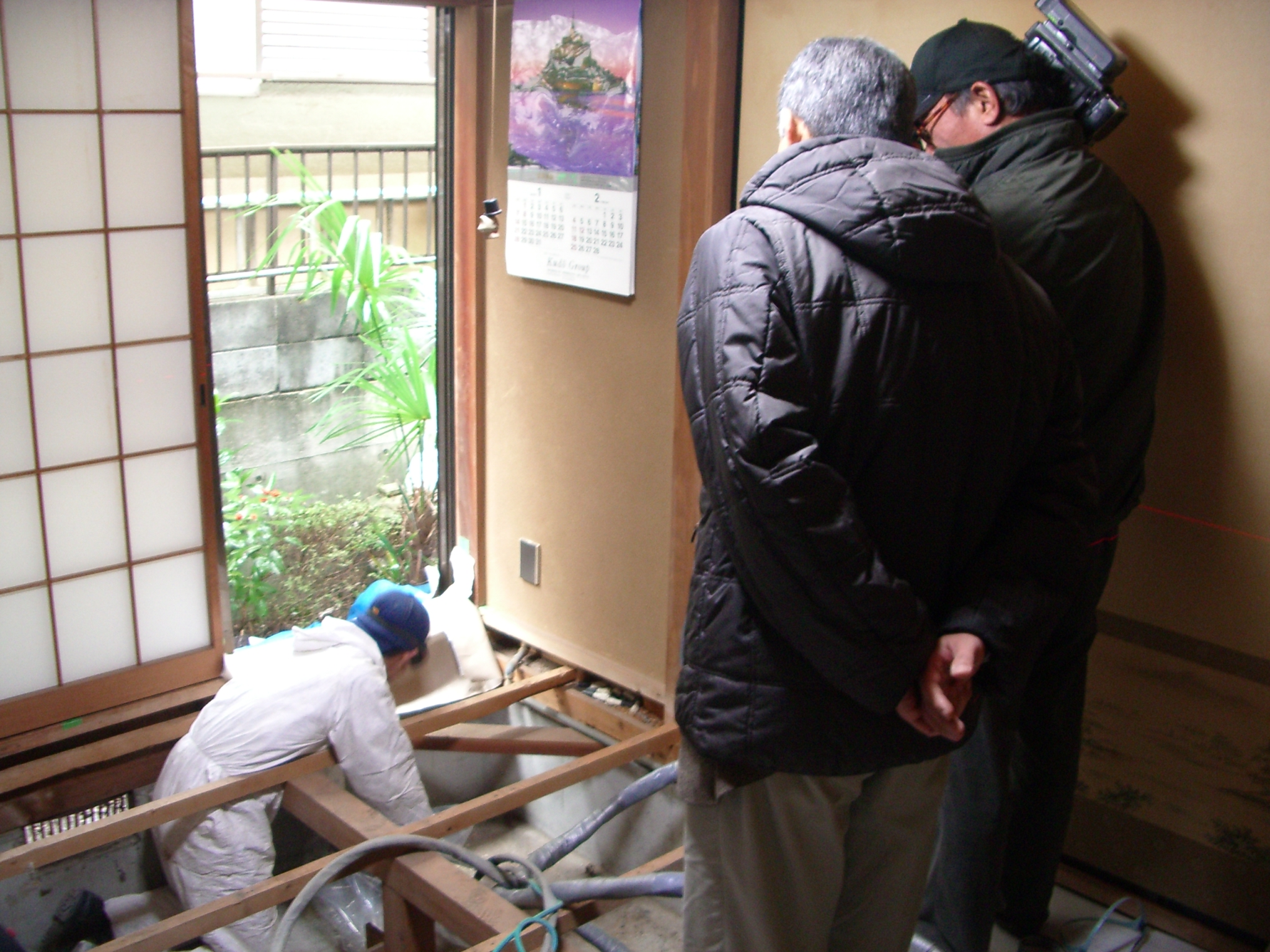 これは、和室内での撮影の様子。和室の畳を剥がしての施工です。