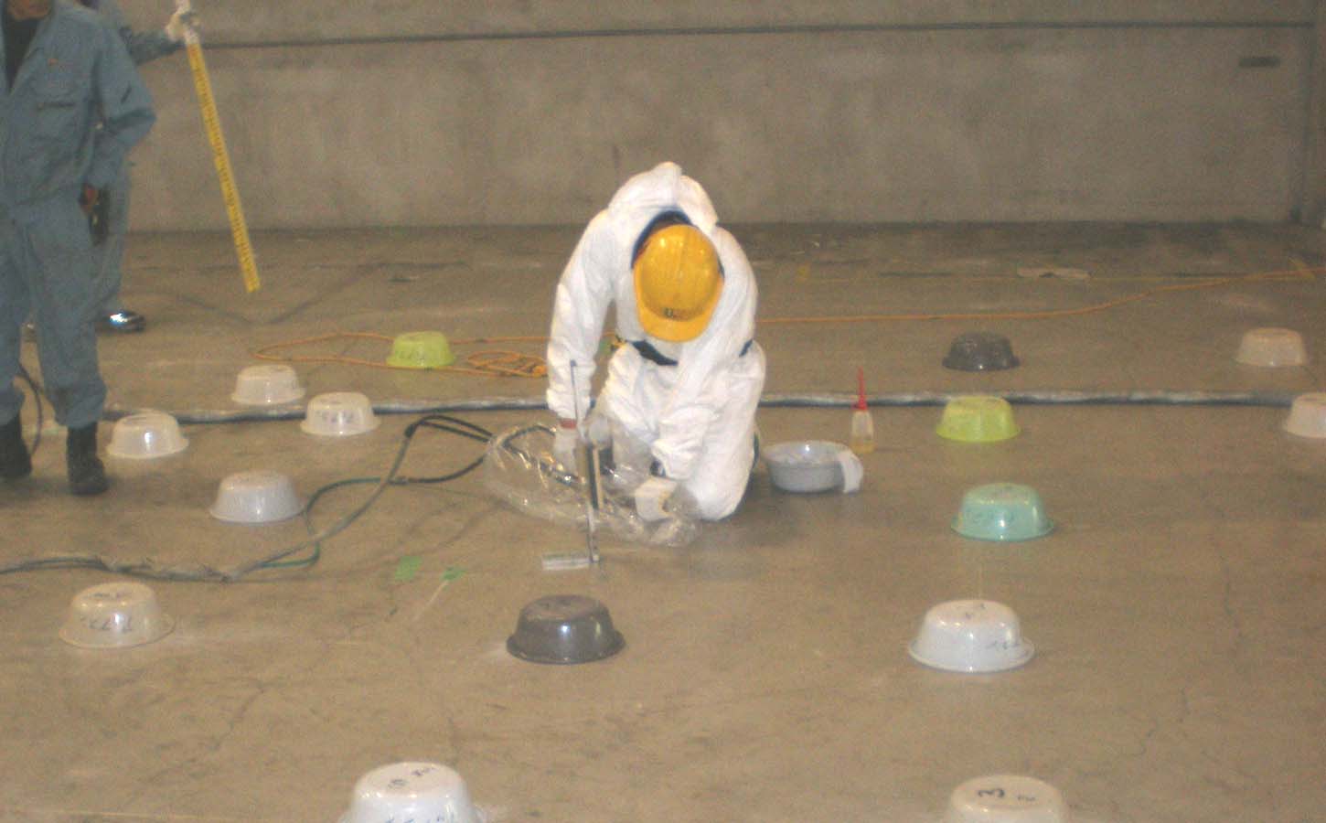 床が沈下する原因として、まず地盤が軟弱であることが上げられますが、今回の現場のように、貨物の重さが原因で沈下するケースもあります。 またこの他には、機械の重さが原因で床が下がっている工場など。。