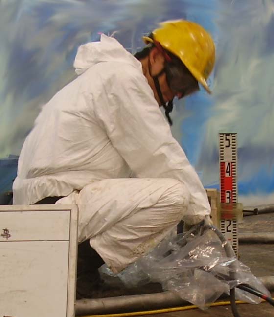 ここは、以前アップコンにて修正をさせて頂きました、福岡県内某工場です。修正をご希望されている面積は大きく、お客様のご都合で、何度かに分けて修正させて頂くことになっていたのですが、この度、その続きをさせて頂きました。
