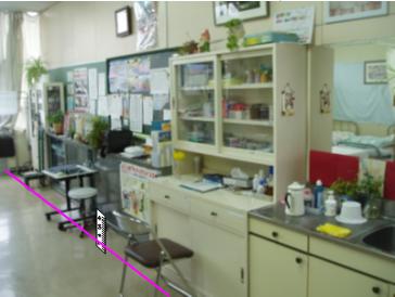 写真は保健室。よ~く見ると、保健室らしいポスターが貼ってありますがわかりますか?