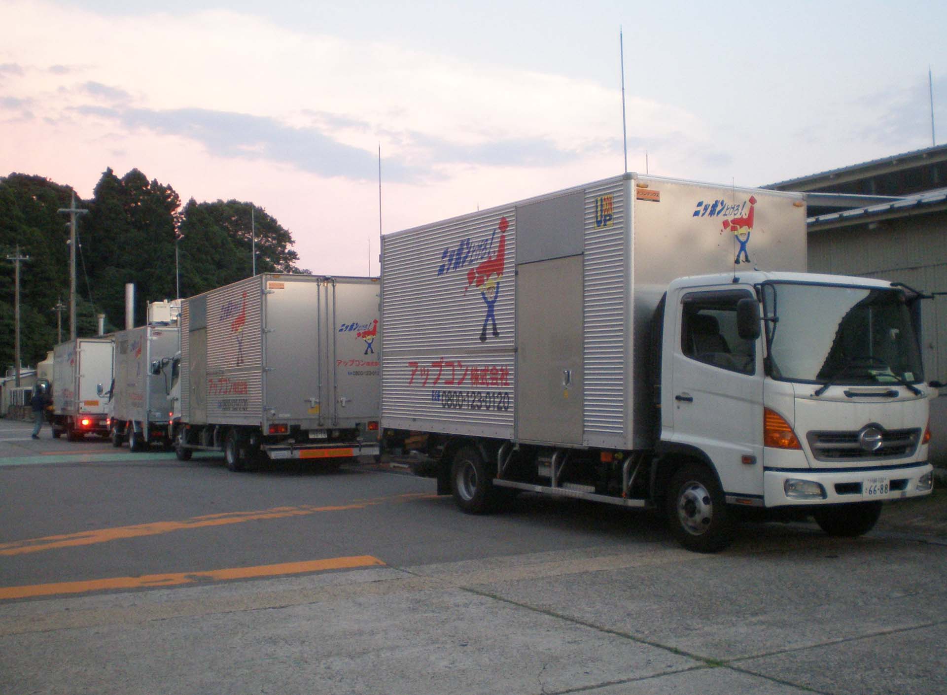 小型トラックのアップコン号たちも、4台勢揃いとなると、ひろ~い場所で撮影しないと、納まらないかもね・・。