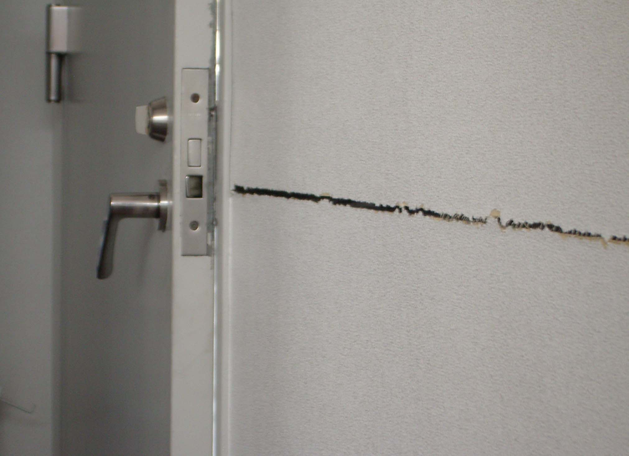上の写真の丁度反対側(内側から)見た写真ですが、天井と壁の間に同じように隙間が見られました。