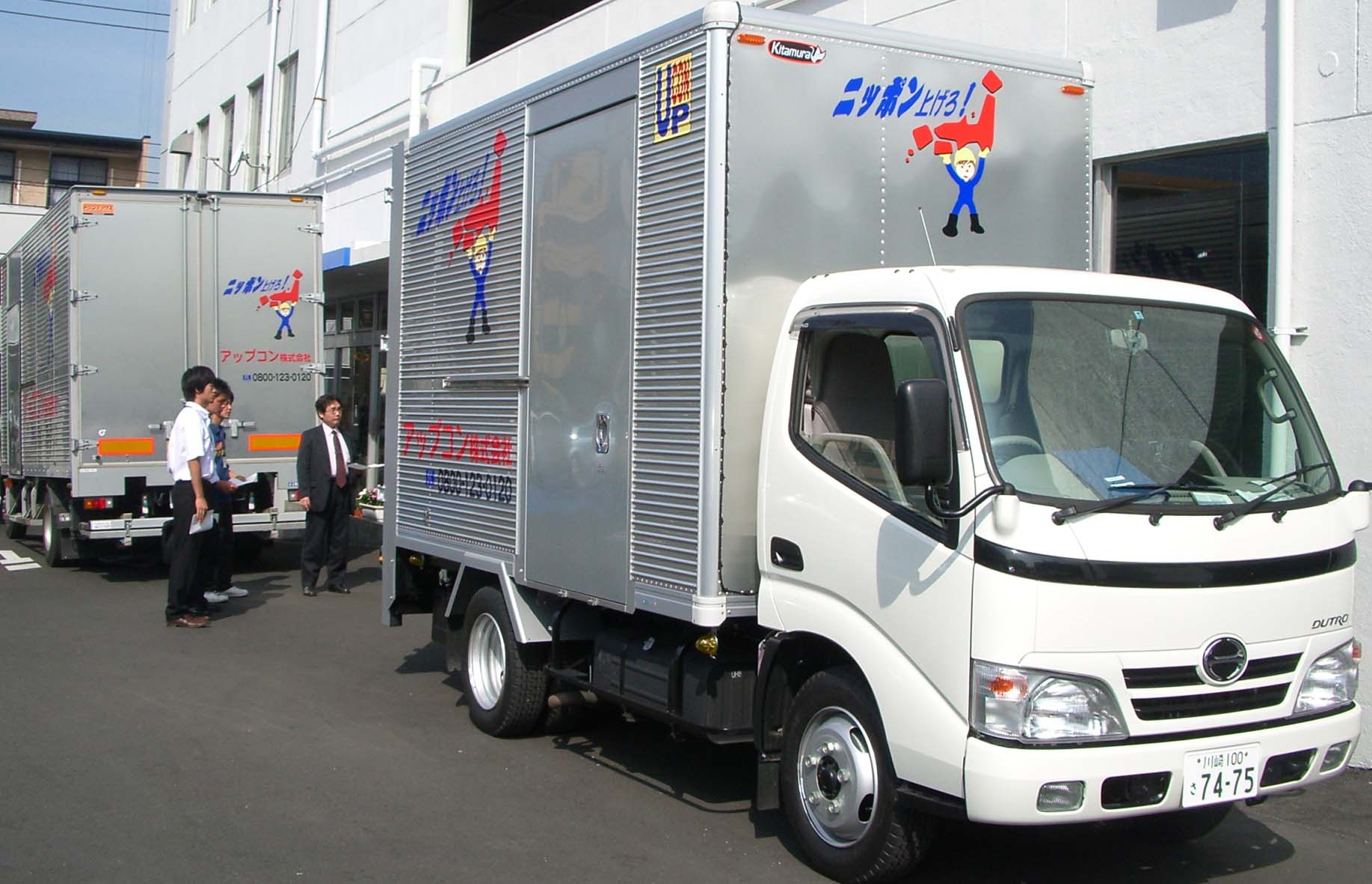 手前は先日神社にて交通祈願をしたばかりのアップコン4号トラックです。この日がデビュー