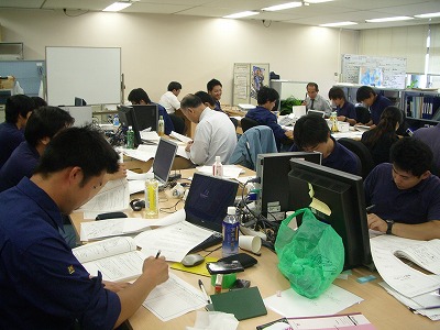 現在、施工に調査にと忙しく、どうしても予定を調整できず、技術くんが数名参加できませんでしたが、それでも、ほぼ全員事務所に集合。昨年、狭い事務所から広い事務所に引っ越してきたばかりなのに、事務所にある机や椅子はほぼ満杯。