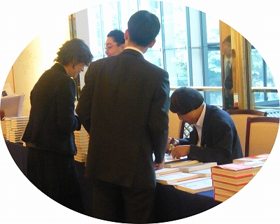 一角に書籍コーナーが設けてあり、ココロが通りすぎた時は、サインを求める人で、ズララ~~~っっと並んでいました。