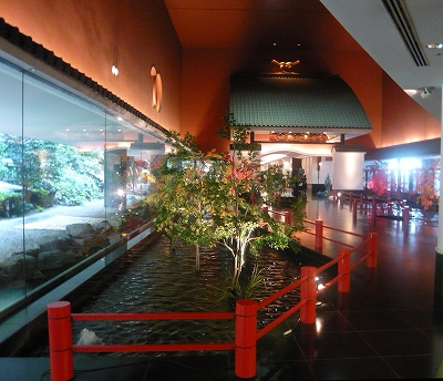 内装はすごかったです。。モダンな和風っていったところでしょうか。橋があったり池があったり、、壁には着物を着た女性の絵が沢山飾ってありました。。