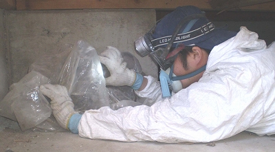 和室の畳を剥がし、そこから床下に潜り、作業させて頂きました。
