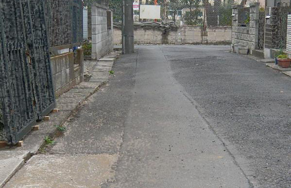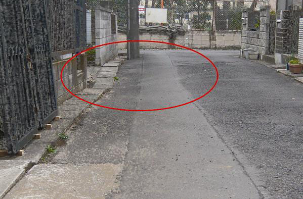 この近辺は宅地造成地。。 ここだけでなく、近隣の住宅も傾いていました。外に出てみると・・、