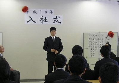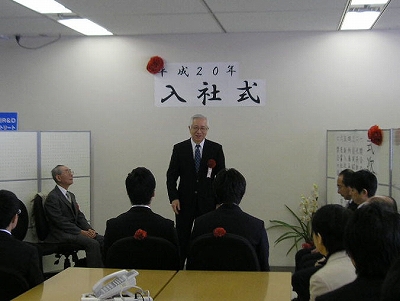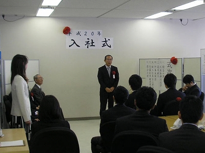 ”相撲界において”心・技・体”という言葉を使います。精神的に強く、技術があり、健康であること。これが抜群に備わってないと横綱になれない。。 サラリーマンも社会人も同じことです。特に、アップコンの技術部は技術力を求められます。また、技術部は体が資本になってくる。自己管理をしっかりとし、一日も早く会社に溶け込んで活躍してほしい。それが、会社が伸びることにもなります。”