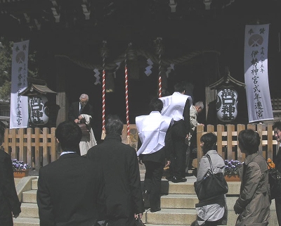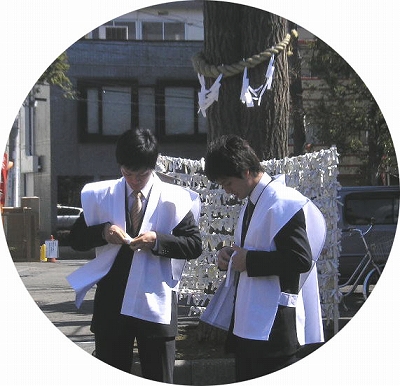 いえいえ、これは”ご祈祷着”というそうです^^; m社長と新入社員の二人は、この”ご祈祷着”を見にまとい、神社の中へ。