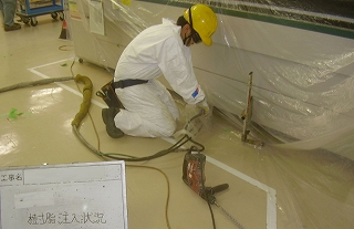 福島県内にある、某精密機器工場。軟弱地盤が原因で、床下に空隙ができていました。