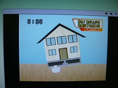 ”住宅問題の1つとして、地盤沈下を取り上げる”というテーマで、その地盤沈下が原因で傾いた住宅を修正したアップコンの施工現場が紹介されました。