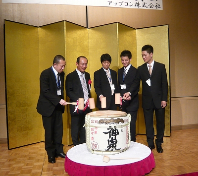 これからアップコンを背負って立つフレッシュなメンバーが選出され、m社長を囲んでの鏡割りとなりました。