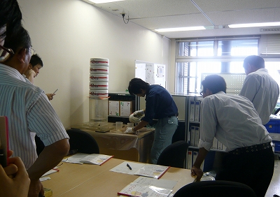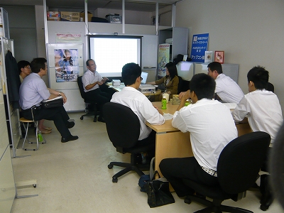 デモの後はm社長が、特殊ウレタン樹脂や施工現場の説明などを、パワーポイントや映像・写真を使いながら説明。。