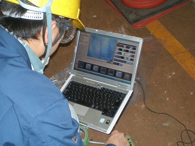 アップコンの空隙調査は、ドリルで削孔した孔にCCDカメラを入れて、パソコンを通して確認させて頂きます。