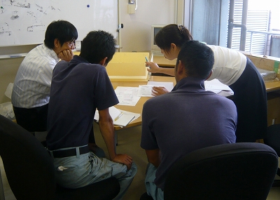 施工に忙しい技術くんたちの貴重な時間を頂戴し、熱い打合せをしています。