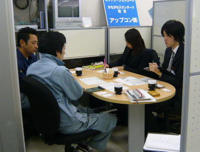 リクルートの担当者の方に来て頂き、展示会のデモ隊でお馴染みの、二人の技術くんをインタビューしてもらいました。 およそ1時間。さあて、どんなインタビューを受けているのか・・・な?