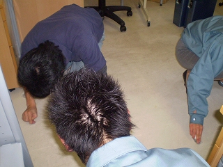 「まずは、残念ながらドンびりだった方から・・。 h川さん、s家さん、h美さん、前へ。」
