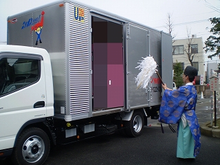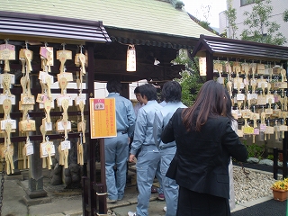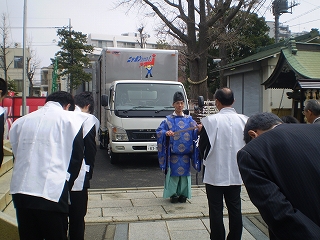新入社員の安全祈願が終わった後、外に出て、5号の安全祈願です。