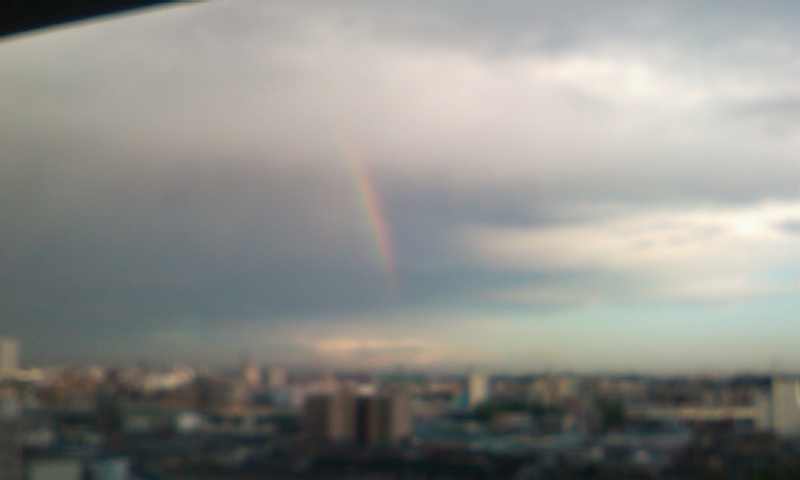 東京や千葉で降っていた雨に、西へ沈む太陽に光が反射して、この虹が拝めたそうです。何だか良いことが起きるのかな?