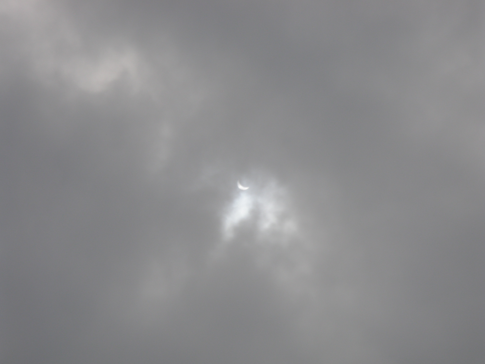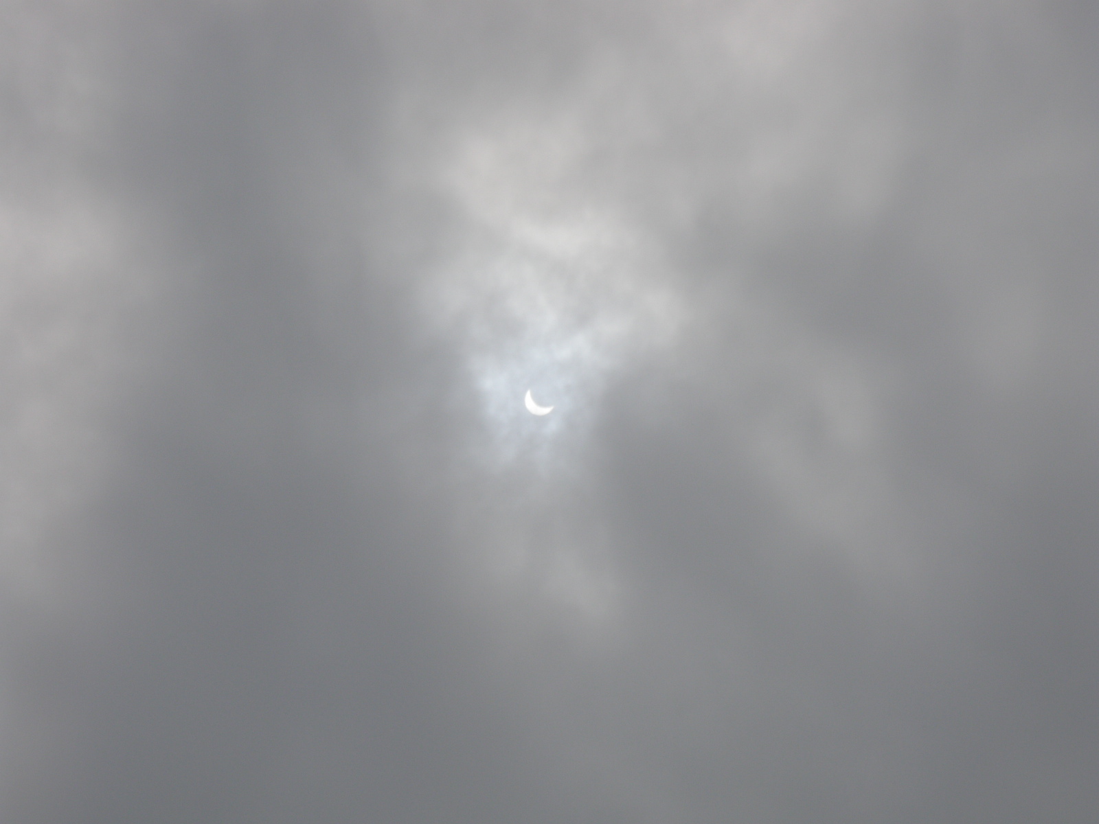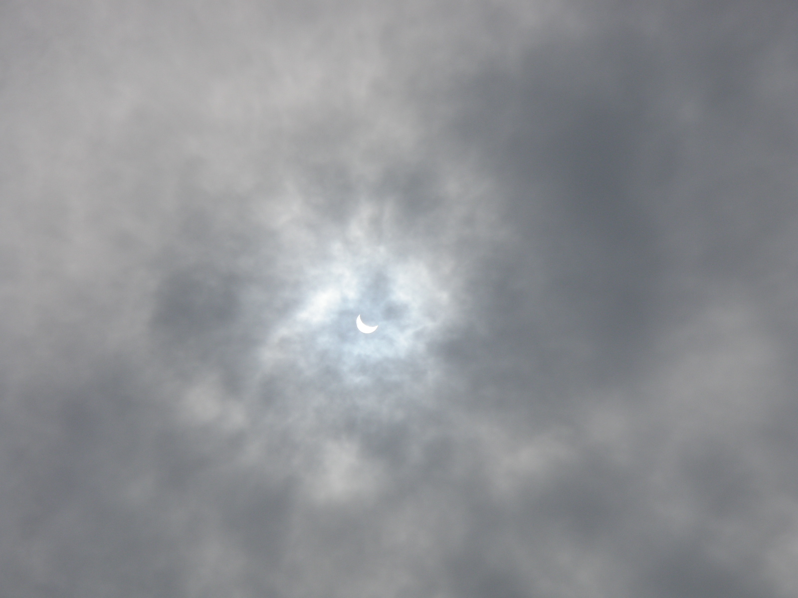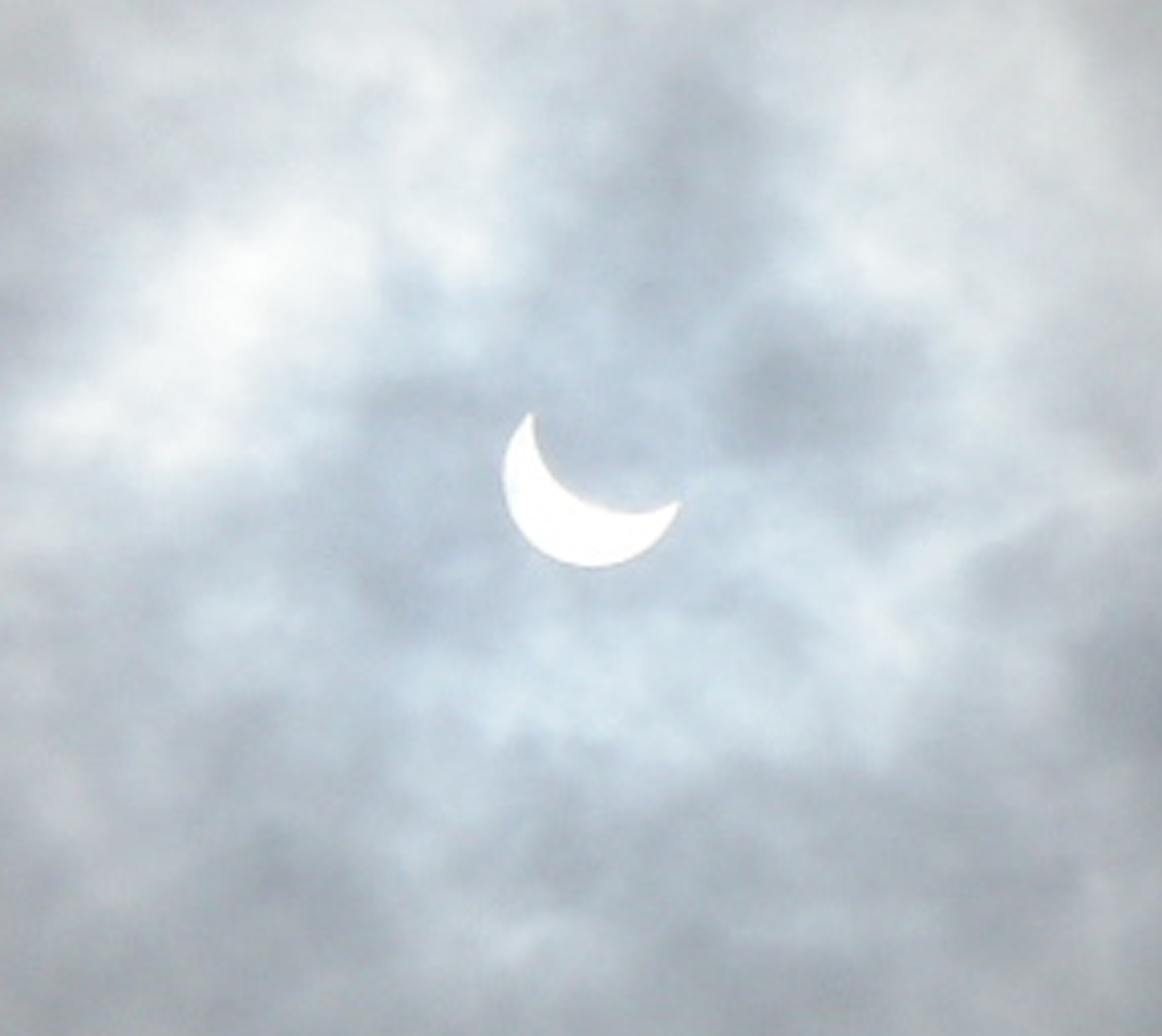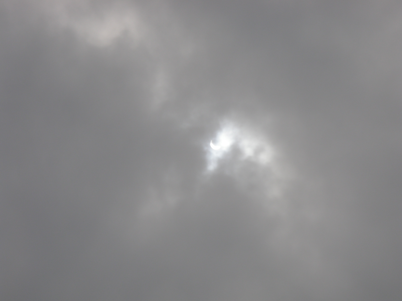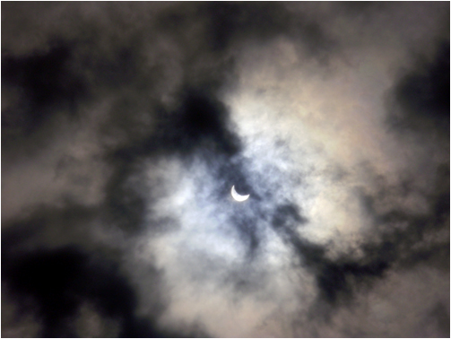「日食が肉眼で直視でき、思わずシャッターを切りました。90%の日食時は、周囲はやや暗くなり風も冷たく感じました。セミの声もやんだような気がしました。」