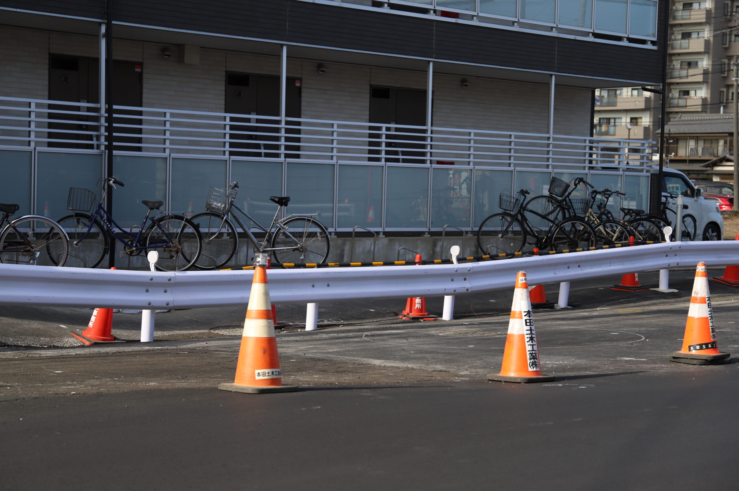 その後本復旧に向け、本田土木工業株式会社様が陣頭指揮をとられ、薬液注入工事を実施し、地盤改良および舗装工事を行う流れで進められました。