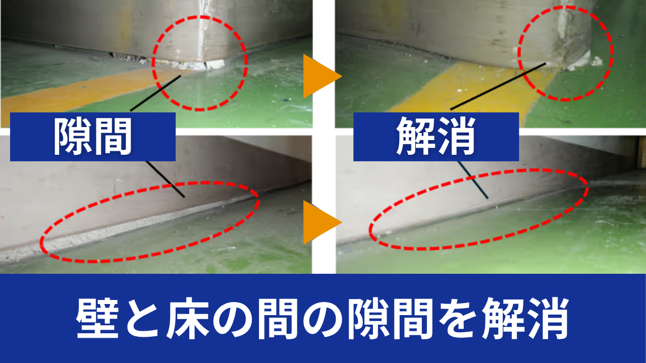 また、沈下の影響で壁と床の間に隙間が生じていました。