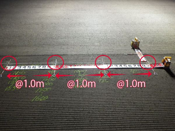 注入位置をマーキング後、ドリルで1m間隔で削孔します。