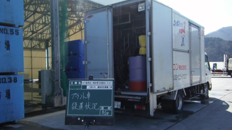 左:施工前 右:施工後 版と版で段差がついていた箇所を全ライン修正したことで、水溜りが解消され、フォークリフトもスムーズに走行できるようになりました。