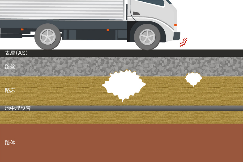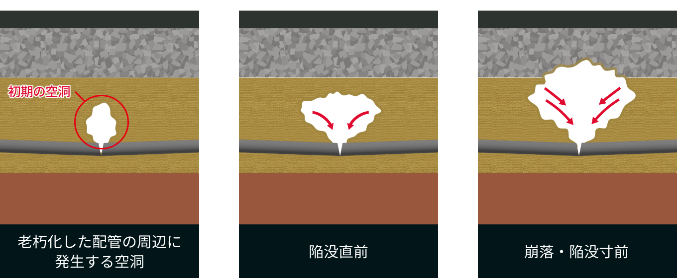 道路陥没につながる地盤の空洞は、主に次の要因によって生じます。